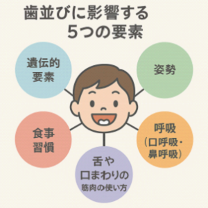実は、歯並びの良し悪しは単なる「遺伝」だけではありません。姿勢・呼吸・食べ方・話し方・睡眠の質など、日々の生活習慣が口の発育や歯並びに大きく関係しているのです。