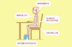 足裏がしっかり床につくように椅子の高さを調整する(足がぶらぶらしない)